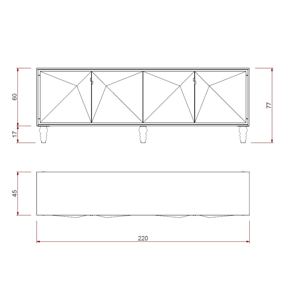 Balcão Buffet Marrocos 220 Cm 4 Pts Laca com Portas Geométricas