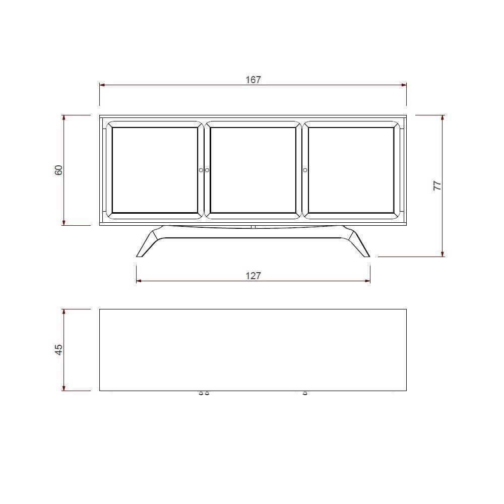 Balcão Buffet Ricco 167 Cm 3 Pts Laca com Portas em Palhinha