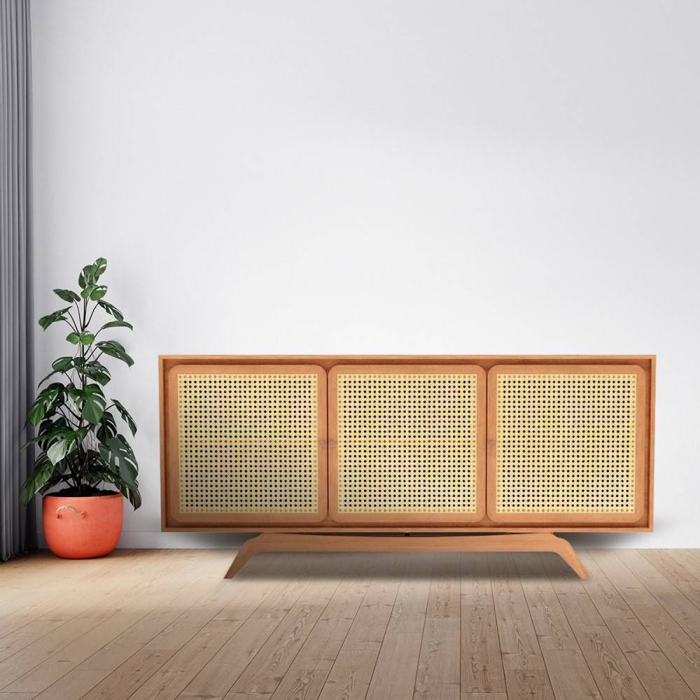 Um detalhe super interessante do Balcão Buffet é a palinha portuguesa nas portas, além de estar super na moda deixa a parte interna muito bem ventilada.
