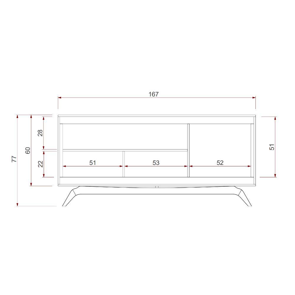 Balcão Buffet Ricco 167 Cm 3 Pts Laminado com Portas em Palhinha