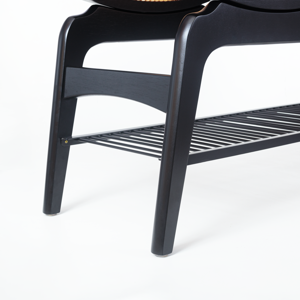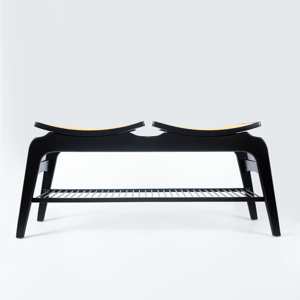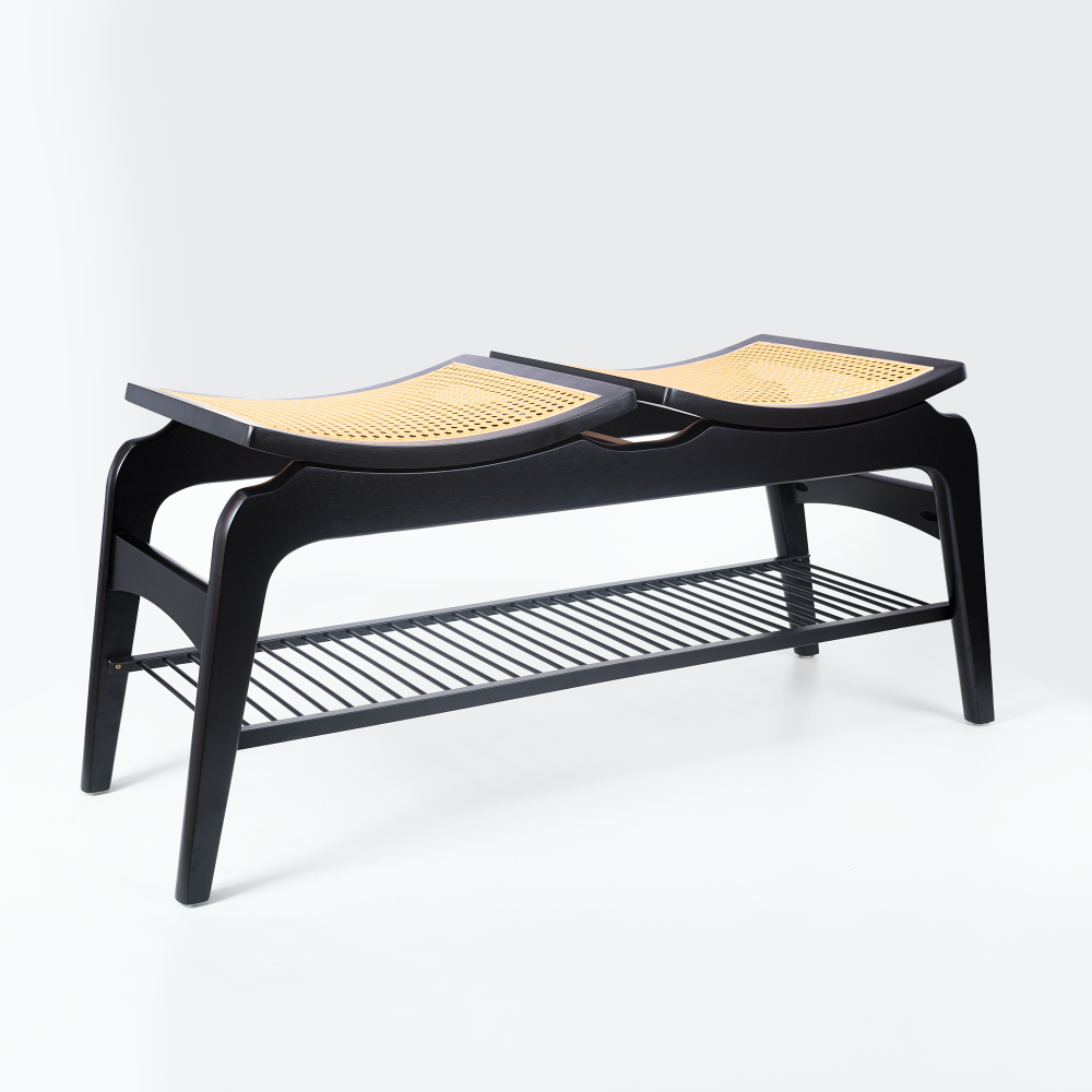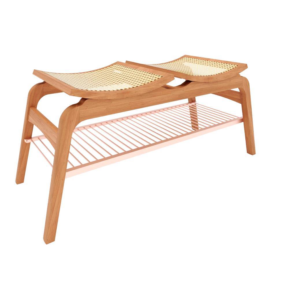 Banco Ricco 2 Lugares Madeira Assento Palhinha e Apoio Calçados