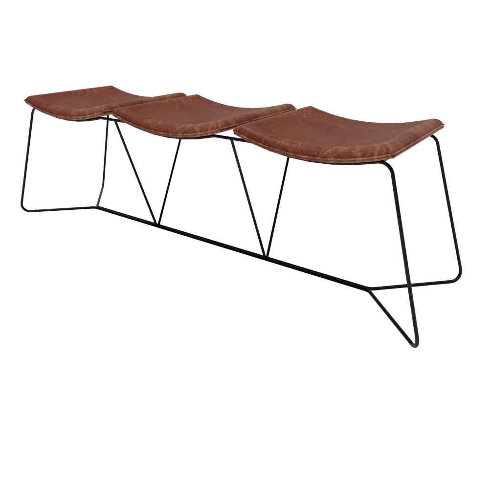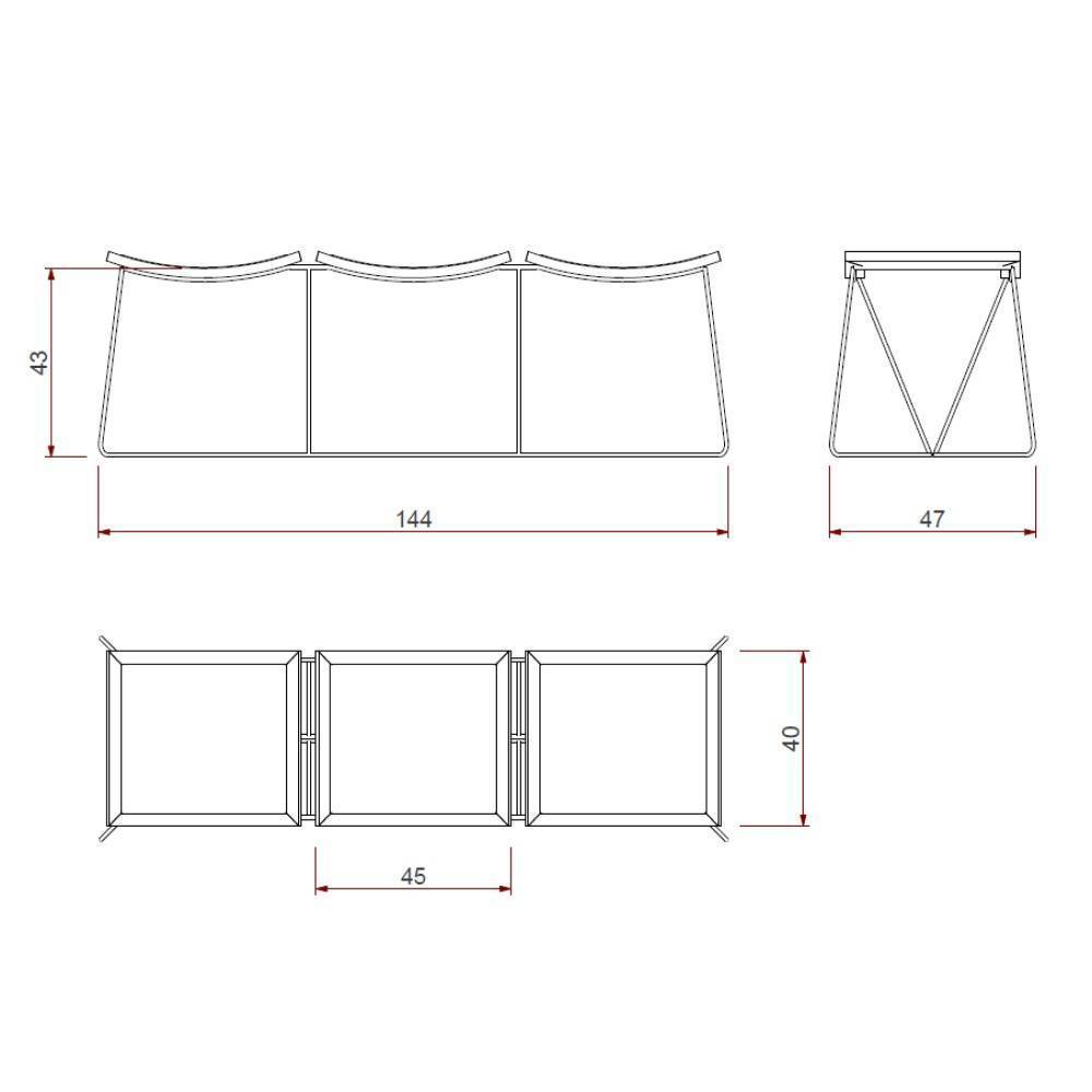 Banco Ricco 3 Lugares Base Metal com Assento Estofado