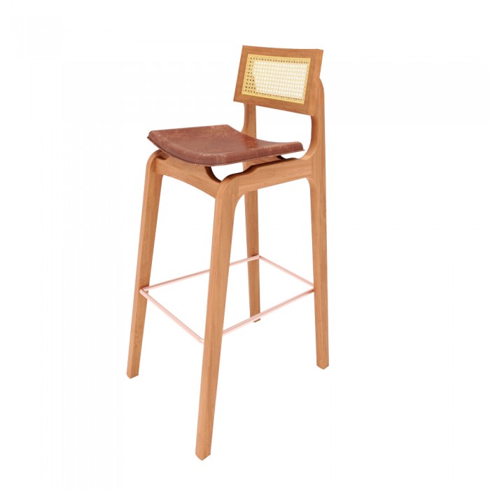 Banqueta Milão Alta Assento Estofado e Encosto em Palhinha