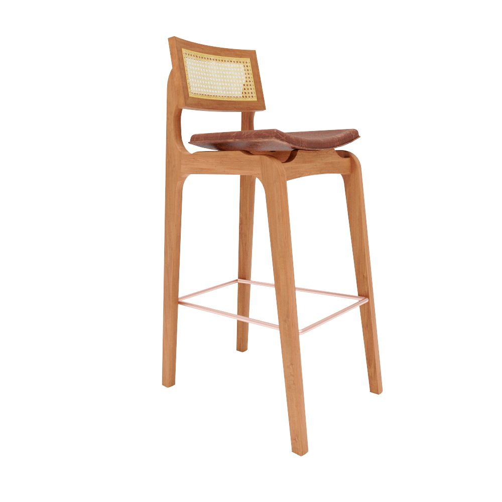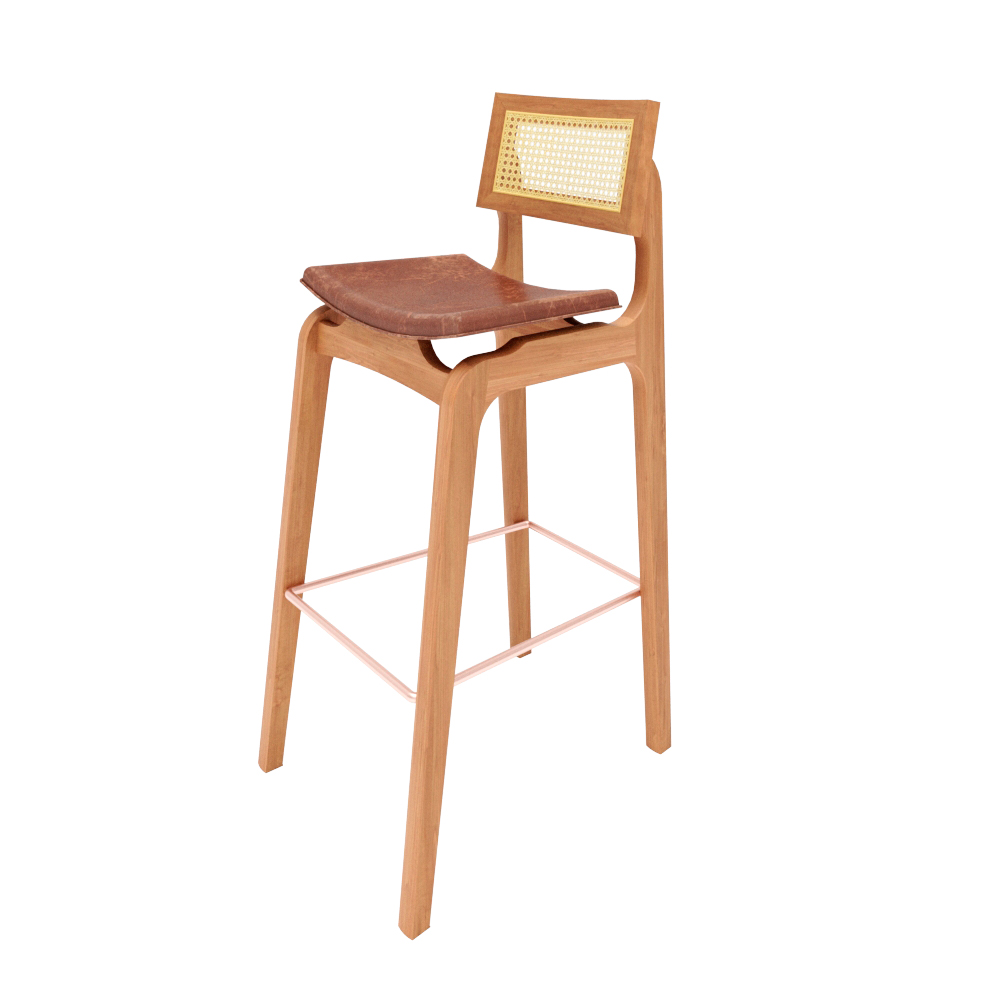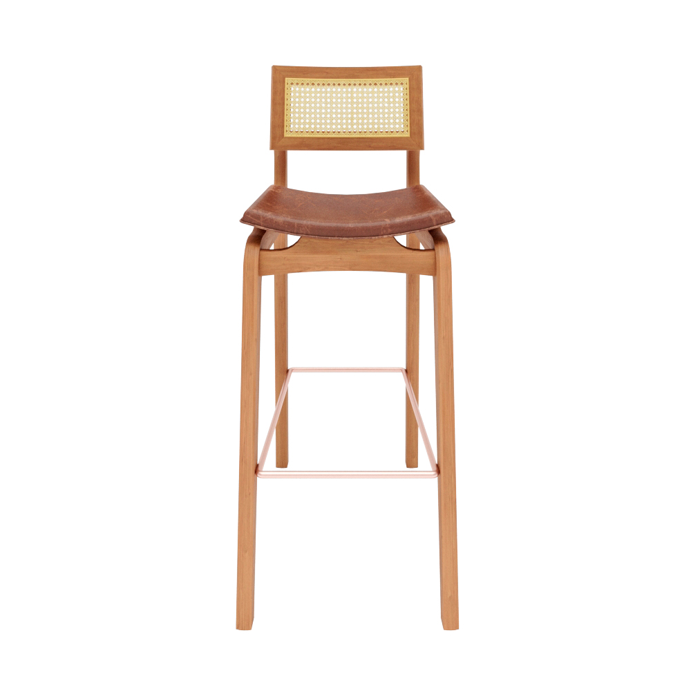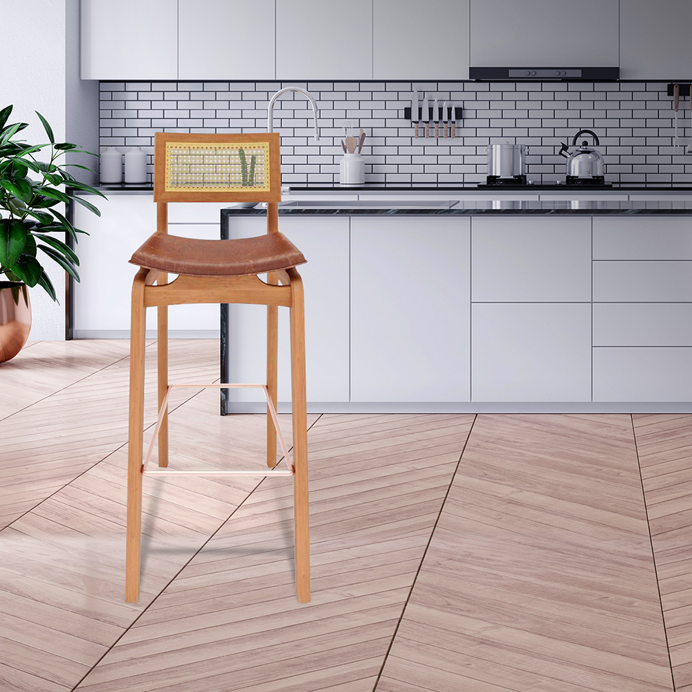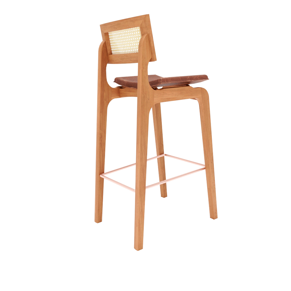 Banqueta Milão Alta Assento Estofado e Encosto em Palhinha
