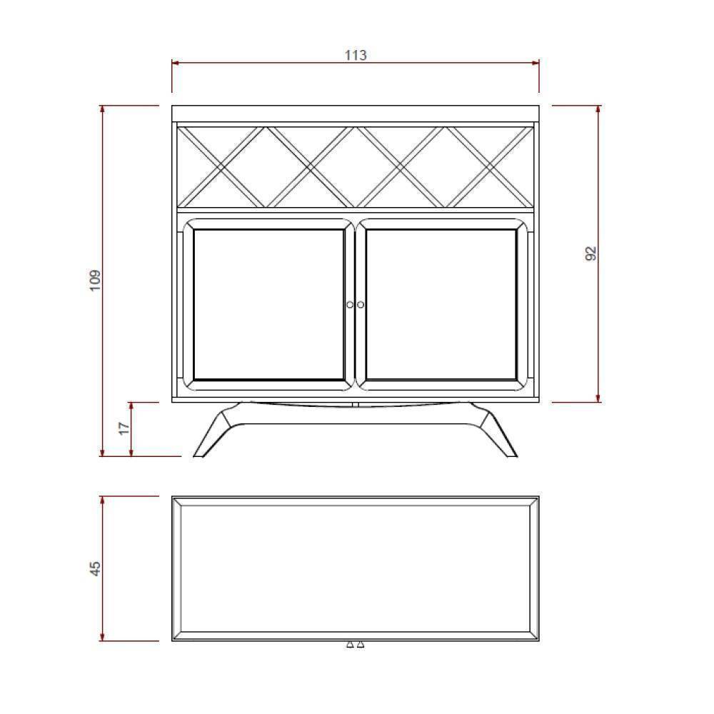 A bandeja superior possui um espelho e os canto internos são em 45 graus, assim ficando super especial e facilitando a limpeza