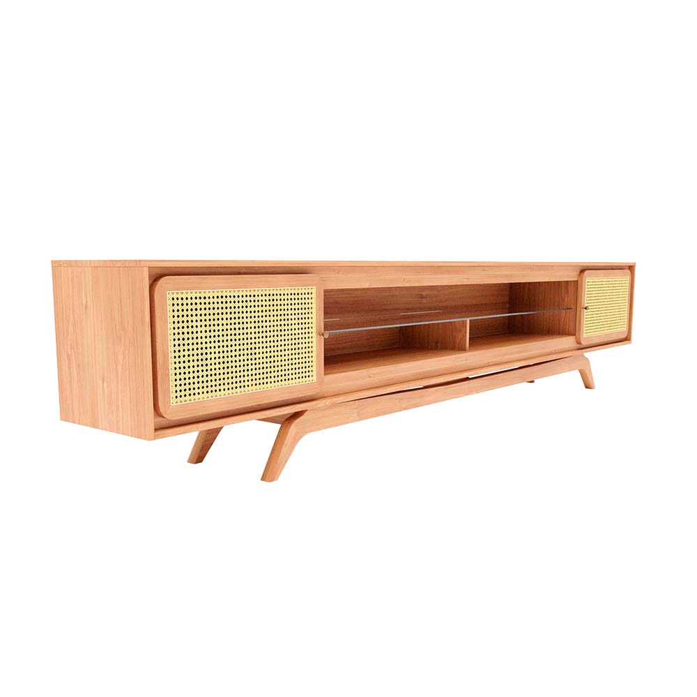 O Rack Ricco tem a altura perfeita, os pés são em madeira maciça de Tauari, deixando o Rack afastado do piso, facilitando a limpeza e dando um toque todo especial ao móvel.